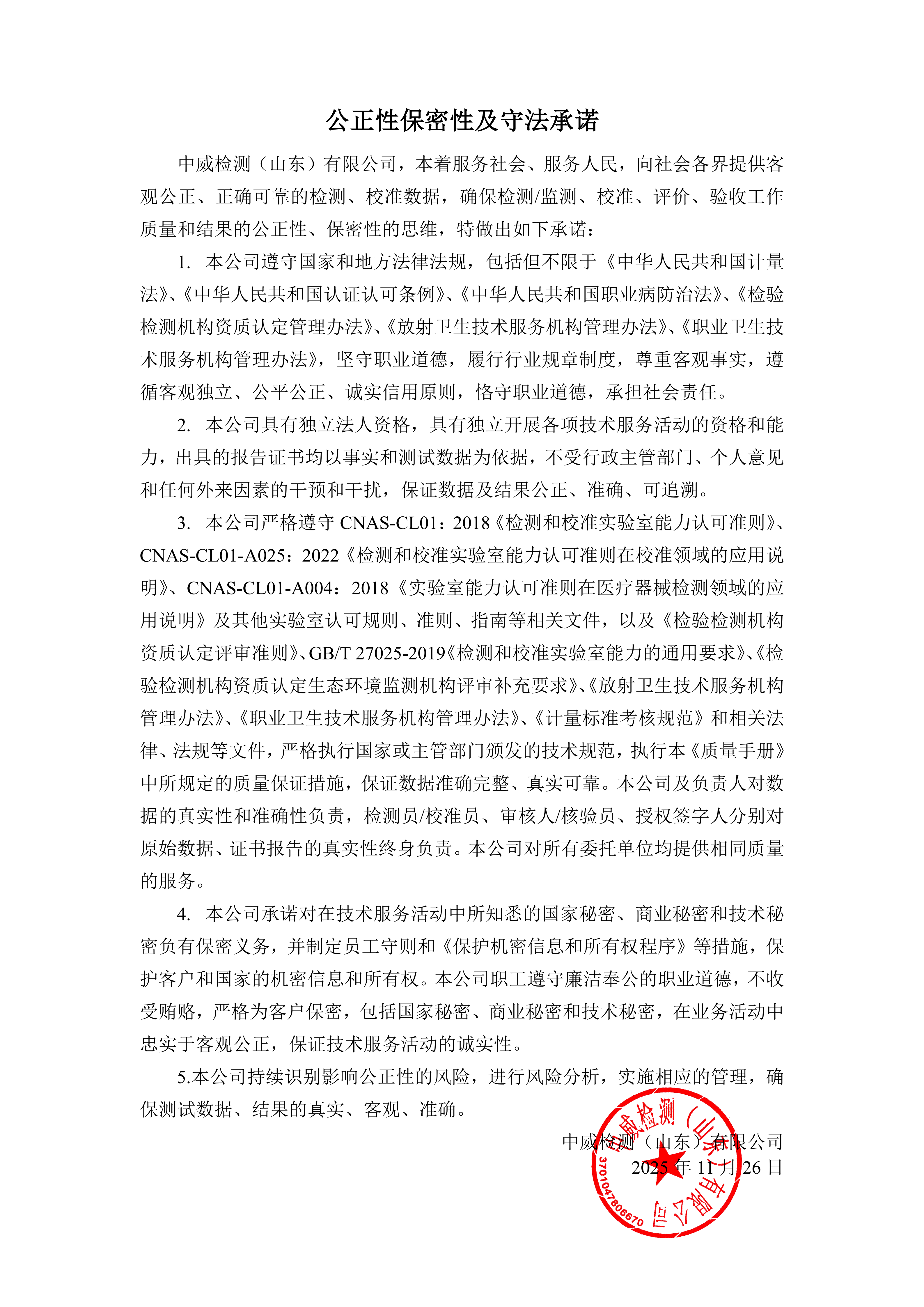 中威检测公正性保密性及守法承诺-ag平台入口